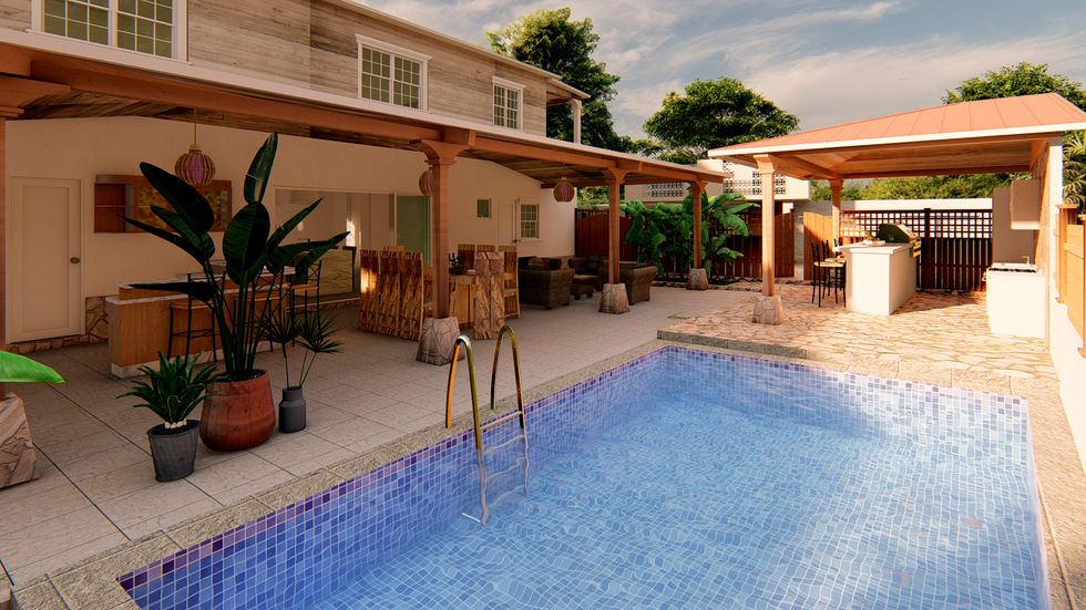 The Augier Residence stands as a testament to our commitment to revitalizing spaces with an exquisite blend of legacy and contemporary living. This transformation of an existing wooden house on pillars into a two-level modern haven showcases our dedication to preserving tradition while embracing the conveniences of modern life. The ground level now features a serene bedroom with an ensuite bathroom, a versatile multipurpose room, and a central living-kitchen-dining area that forms the heart of the home. The outdoor space is thoughtfully designed, featuring a covered terrace, an outdoor kitchen, a pool deck, expansive parking, and a designated sport area—a harmonious marriage of practicality and recreation. The top level, meticulously remodeled, unfolds into three comfortable bedrooms and two well-appointed bathrooms, complemented by a cozy living area. Augier Residence, named after its legacy, stands proudly as a completed project, inviting residents to enjoy an outdoor oasis where large windows seamlessly merge indoor and outdoor living.